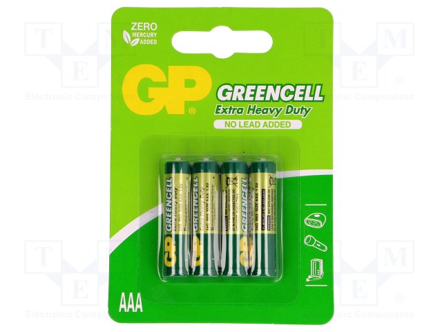 Батарея: цинк-хлоридная; 1,5В; AAA,R3; Кол-во бат: 4