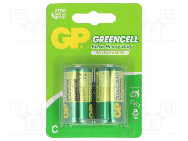 Battery: zinc-chloride; 1.5V; C; Batt.no: 2; non-rechargeable