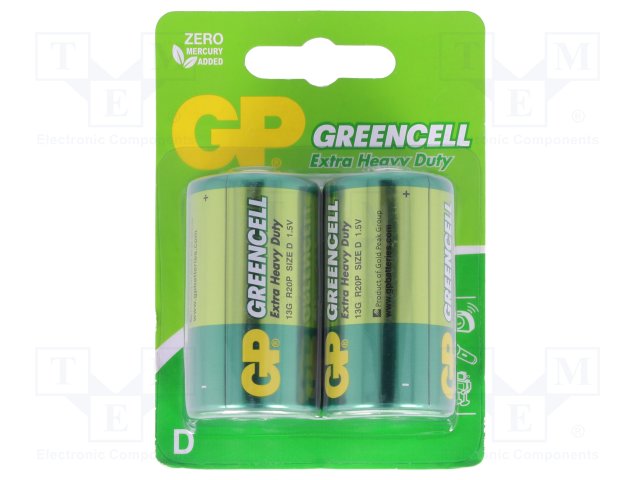 Battery: zinc-chloride; 1.5V; D; Batt.no: 2; non-rechargeable