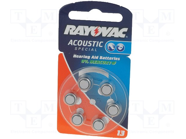 Батарея: цинк-воздушная (ZnO2); 1,45В; AC675,R1154,дисковая