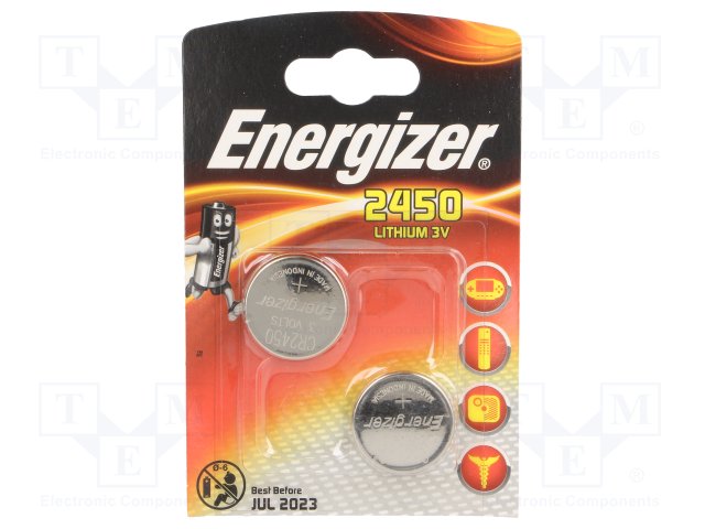 Батарея: литиевая; 3В; CR2450,дисковая; Кол-во бат: 2; Ø24,5x5мм