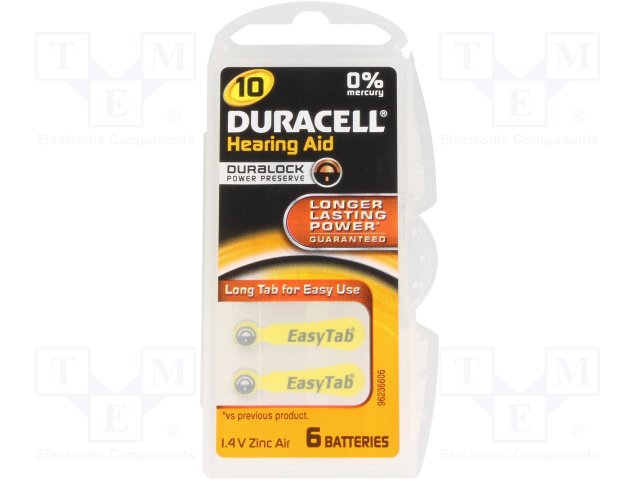 Батарея: цинк-воздушная (ZnO2); 1,4В; AC10,R536,дисковая; 90мАч