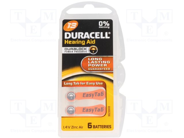 Батарея: цинк-воздушная (ZnO2); 1,4В; AC13,R754,дисковая; 280мАч