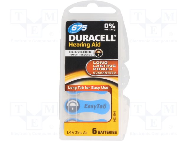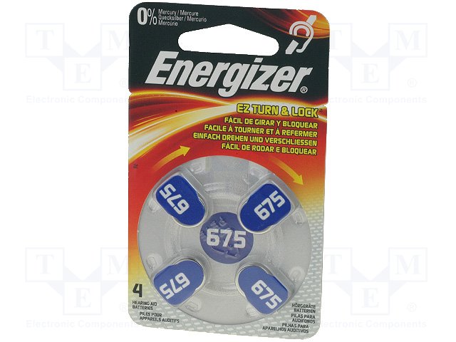 Батарея: цинк-воздушная (ZnO2); 1,4В; AC675,R1154,дисковая
