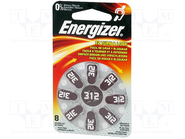 Батарея: цинк-воздушная (ZnO2); 1,4В; AC312,R36,дисковая; 160мАч