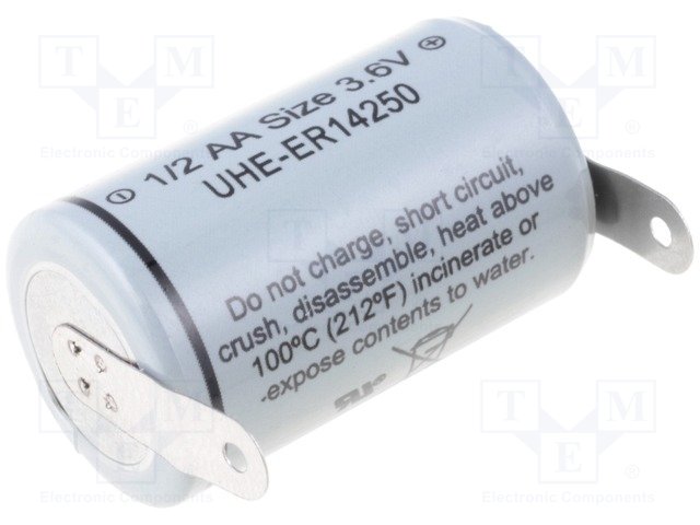 Батарея: литиевая; 3,6В; 1/2AA; плоские, под пайку; Ø14,3x24,6мм