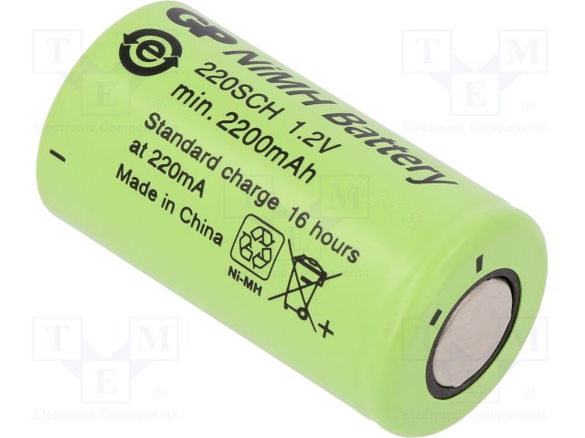 Аккум: Ni-MH; SubC; 1,2В; 2200мАч; Выводы: плоские, под пайку