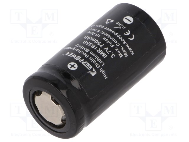 Аккум: Li-Ion; 18350; 3,7В; 750мАч; Ø18x35мм; 8А