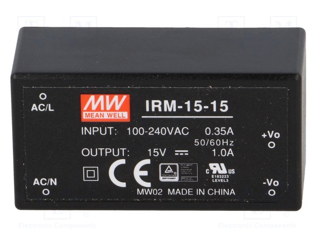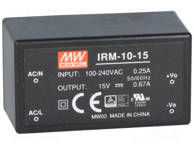 Блок питания: импульсный; модульный; 10,05Вт; 15ВDC; 0,67А; 40г