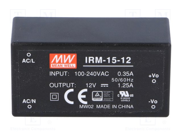 Блок питания: импульсный; модульный; 15Вт; 12ВDC; 52,4x27,2x24мм
