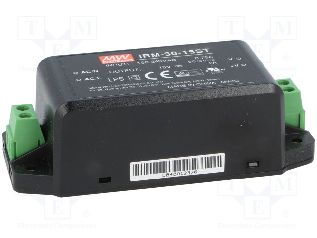 Блок питания: импульсный; модульный; 30Вт; 15ВDC; 91x39,5x28,5мм