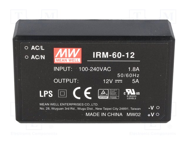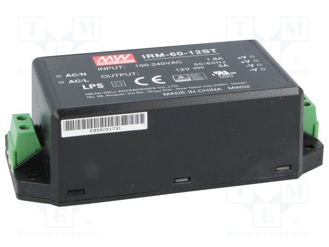 Блок питания: импульсный; модульный; 60Вт; 12ВDC; 109x52x33,5мм