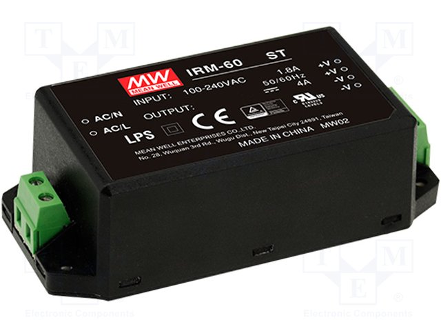 Блок питания: импульсный; модульный; 60Вт; 15ВDC; 109x52x33,5мм