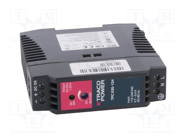Блок питания: импульсный; 30Вт; 24ВDC; 24÷28,8ВDC; 1,25А; 160г |