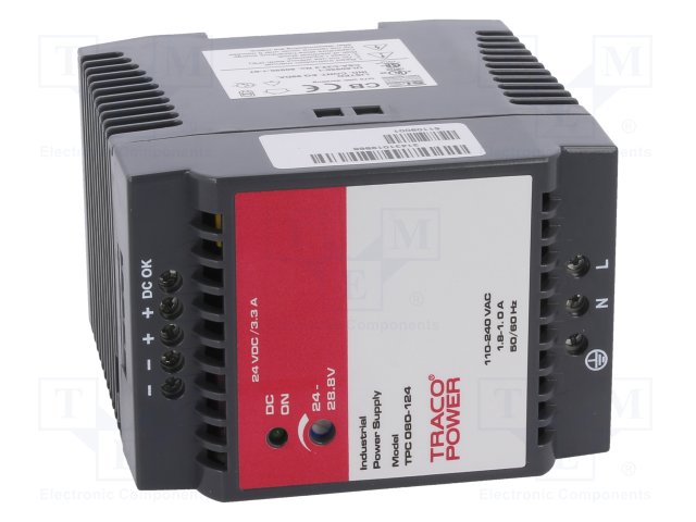 Блок питания: импульсный; 80Вт; 24ВDC; 24÷28,8ВDC; 3,3А; 85÷264ВAC |