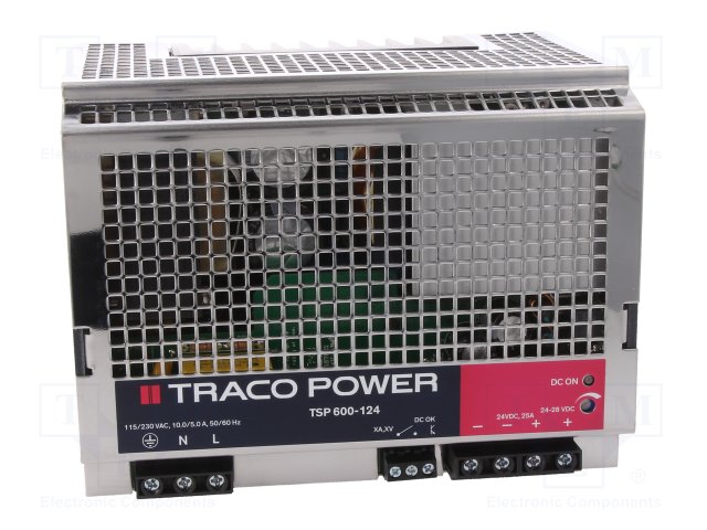 Блок питания: импульсный; на DIN-рейку; 600Вт; 24ВDC; 25А; IP20 |