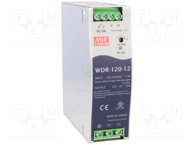 Блок питания: импульсный; 120Вт; 12ВDC; 12÷15ВDC; 10А; 180÷550ВAC |