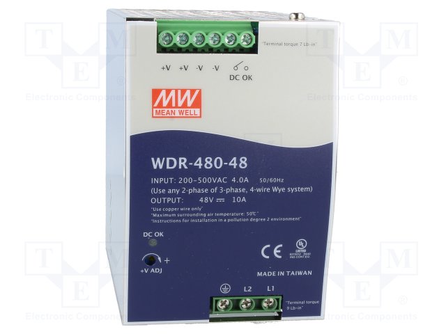 Блок питания: импульсный; 480Вт; 24ВDC; 24÷28ВDC; 20А; 180÷550ВAC |