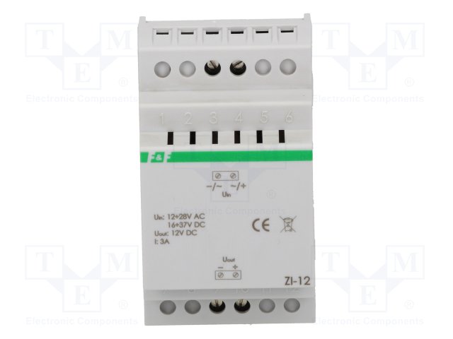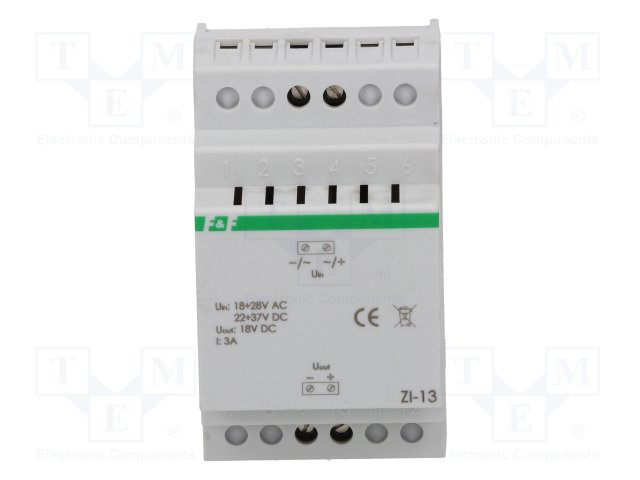 Блок питания: трансформаторный; 15ВDC; 0,8А; 230ВAC; Монтаж: DIN |