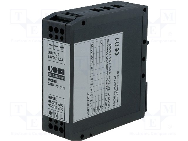 Блок питания: импульсный; 25Вт; 24ВDC; 1А; 185÷265ВAC; Монтаж: DIN |