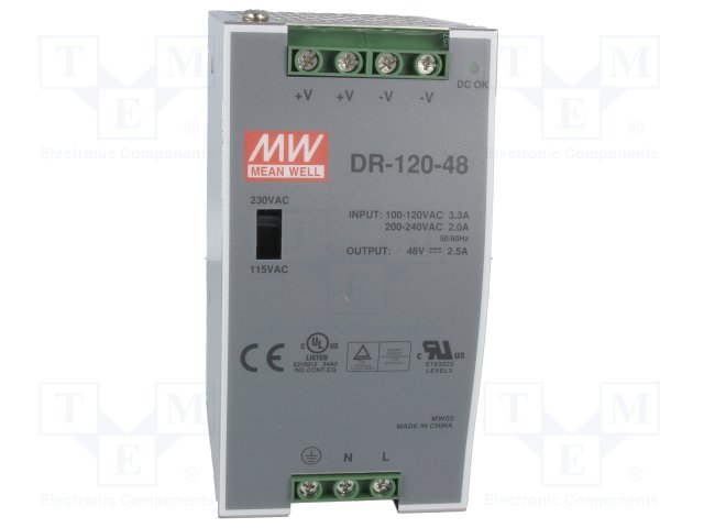 Блок питания: DC/DC; 120Вт; 48ВDC; 2,5А; 67,2÷154ВDC; Монтаж: DIN