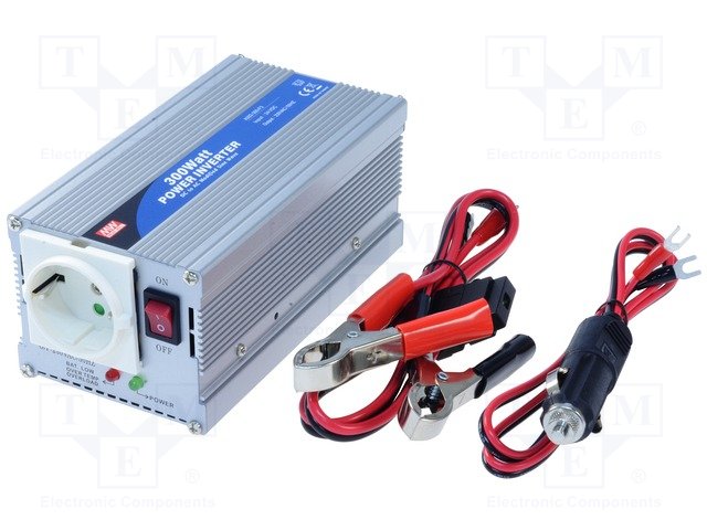 Преобразователь: автомобильный dc/ac; 300Вт; Uвых: 230ВAC; 82%