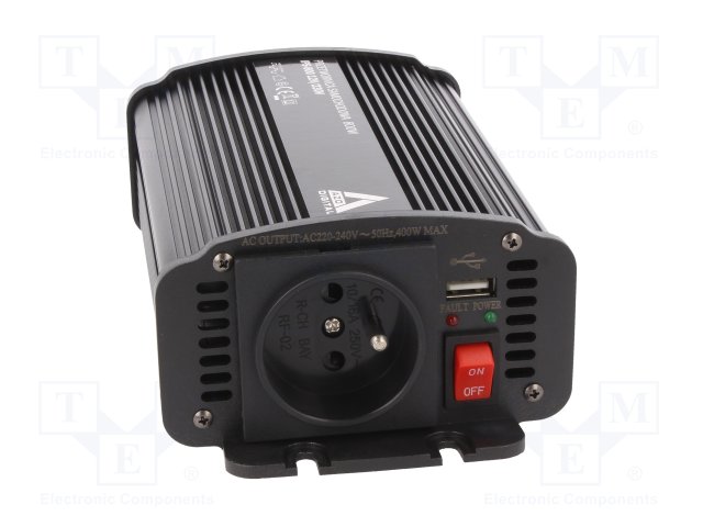 Преобразователь: автомобильный dc/ac; 400Вт; Uвых: 230ВAC; 85%