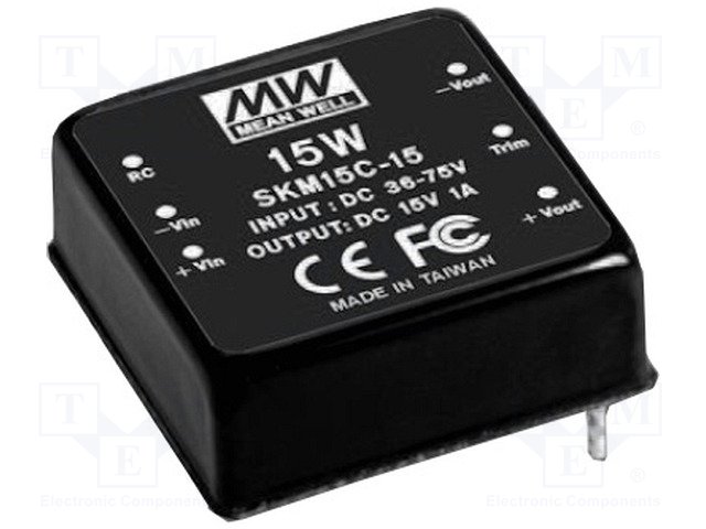 Преобразователь: DC/DC; 15Вт; Uвх: 36÷75В; 15ВDC; Iвых: 1000мА; 15г |