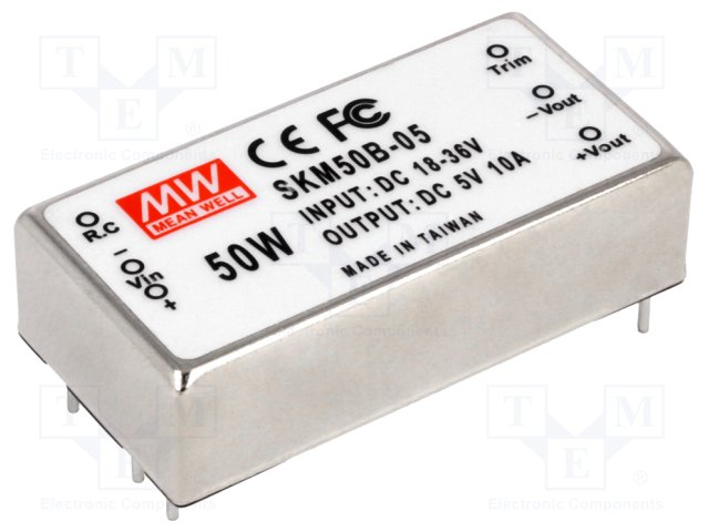 Преобразователь: DC/DC; 50Вт; Uвх: 18÷36В; 5ВDC; Iвых: 10000мА; 43г |