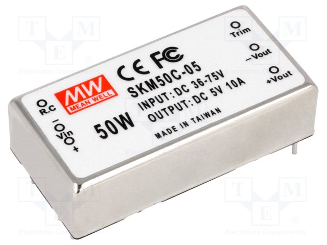 Преобразователь: DC/DC; 50Вт; Uвх: 36÷75В; 5ВDC; Iвых: 10000мА; 43г |