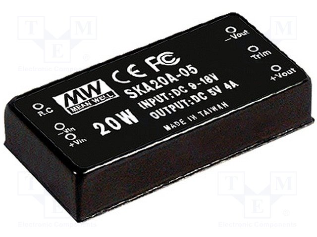 Преобразователь: DC/DC; 20Вт; Uвх: 9÷18В; 5ВDC; Iвых: 4000мА; 2"x1" |