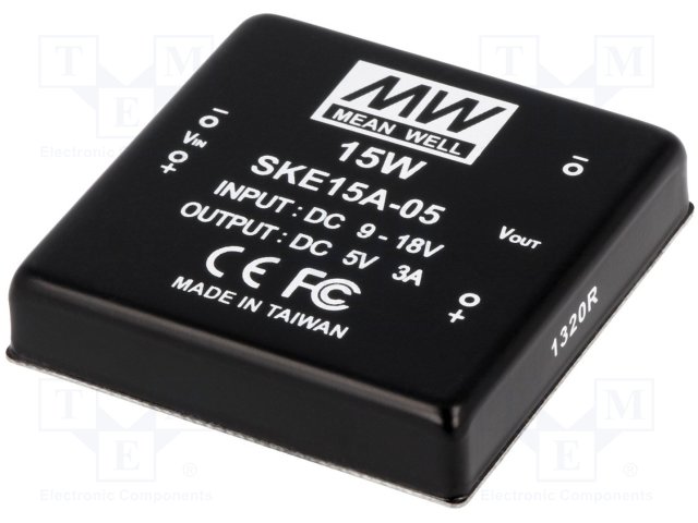 Преобразователь: DC/DC; 15Вт; Uвх: 9÷18В; 5ВDC; Iвых: 3000мА; 2"x2" |