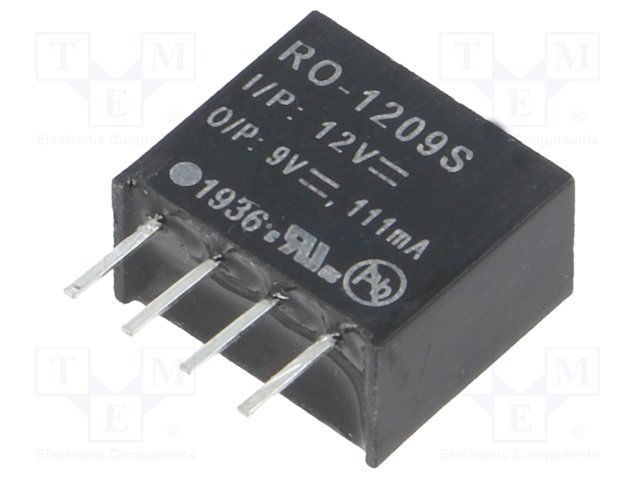 Преобразователь: DC/DC; 1Вт; Uвх: 10,8÷13,2В; Uвых: 9ВDC; SIP4; 1,4г