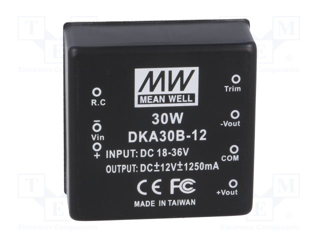 Преобразователь: DC/DC; 30Вт; Uвх: 18÷36В; Uвых: 12ВDC; Iвых: 1,25А |