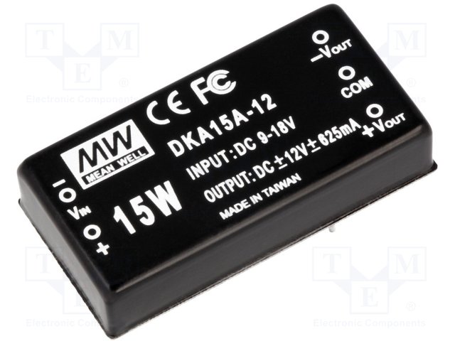 Преобразователь: DC/DC; 15Вт; Uвх: 9÷18В; Uвых: 5ВDC; Uвых.2: -5ВDC