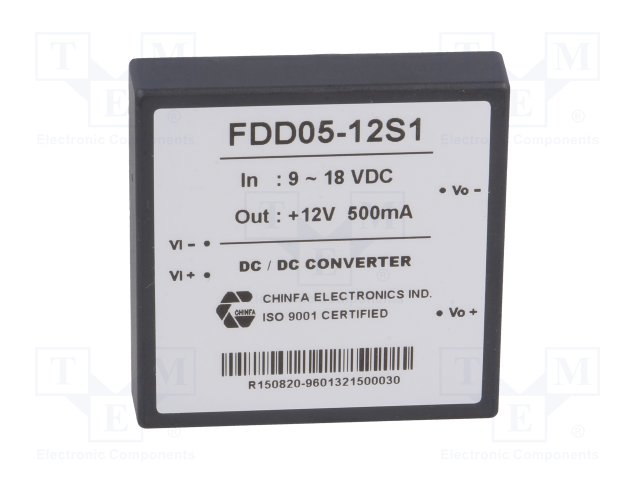 Преобразователь: DC/DC; 6Вт; Uвх: 9÷18В; Uвых: 12ВDC; Iвых: 500мА |