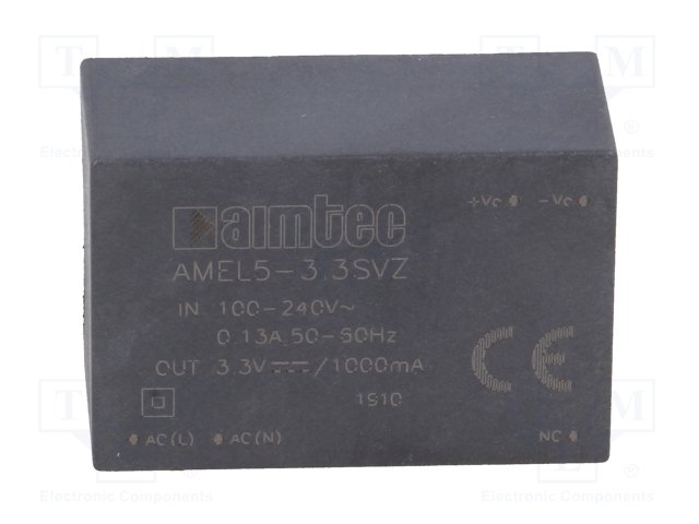 Преобразователь: AC/DC; 5Вт; Uвых: 3,3ВDC; Iвых: 1,5А; 70%; 4кВ; 30г |