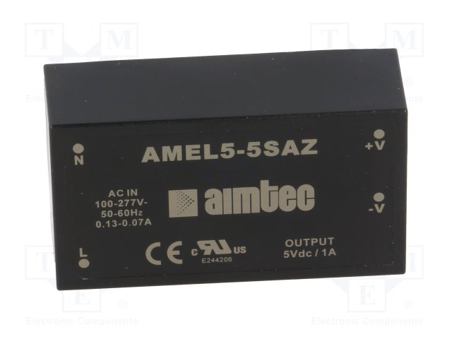 Преобразователь: AC/DC; 5Вт; Uвых: 5ВDC; Iвых: 1А; 78%; Серия: AMEL |