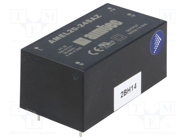 Преобразователь: AC/DC; 20Вт; Uвых: 24ВDC; Iвых: 0,84А; 80%; 4кВ; 70г