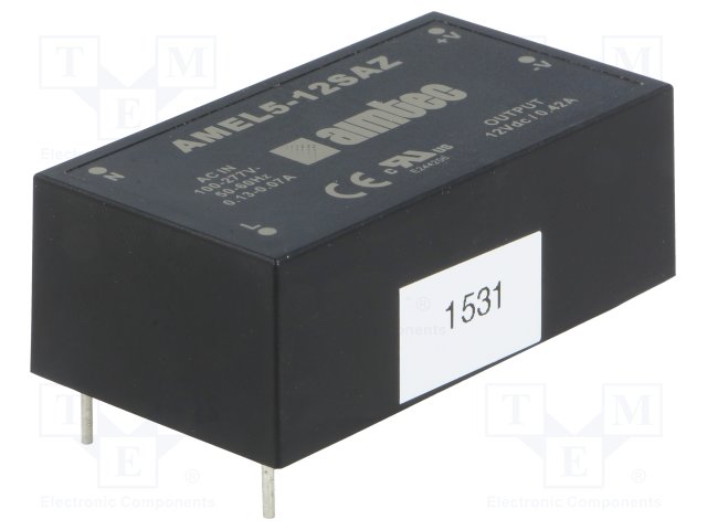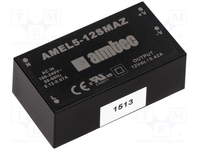 Преобразователь: AC/DC; 5Вт; Uвых: 12ВDC; Iвых: 0,42А; 80%; 4кВ; 43г