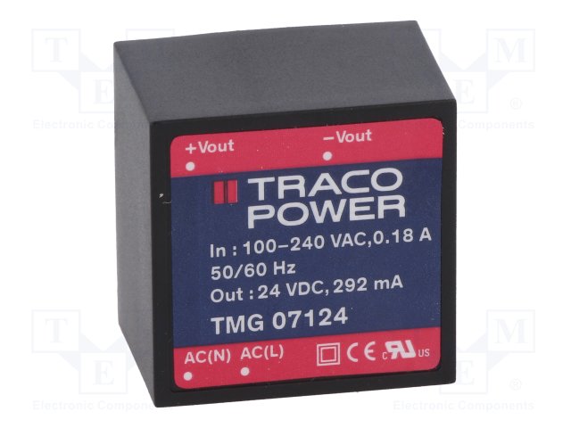 Преобразователь: AC/DC; 7Вт; Uвых: 24ВDC; Iвых: 292мА; 80%; 4200В |