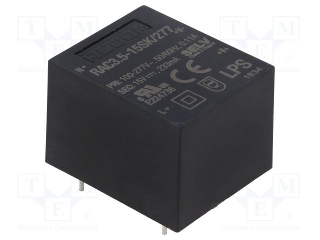 Преобразователь: AC/DC; 3,5Вт; Uвых: 15ВDC; Iвых: 233мА; 83%; 4200В |