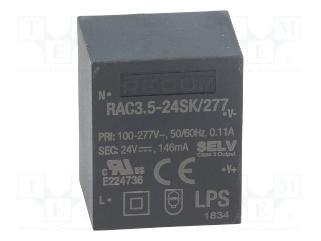 Преобразователь: AC/DC; 3,5Вт; Uвых: 24ВDC; Iвых: 146мА; 84%; 4200В |