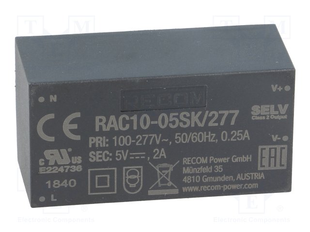 Преобразователь: AC/DC; 10Вт; Uвых: 5ВDC; Iвых: 2А; 82%; Монтаж: PCB |