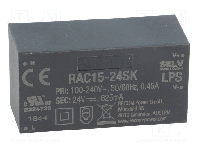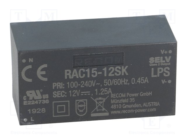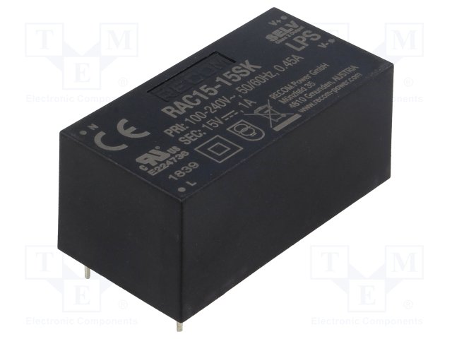 Преобразователь: AC/DC; 15Вт; Uвых: 15ВDC; Iвых: 1А; 78%; Монтаж: PCB |