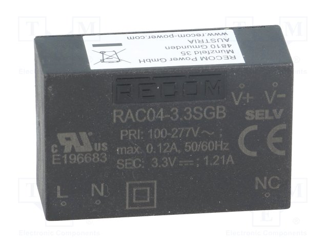 Преобразователь: AC/DC; 4Вт; Uвых: 3,3ВDC; Iвых: 1,21А; 70%; 3000В |