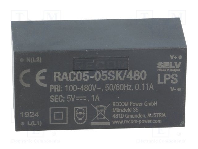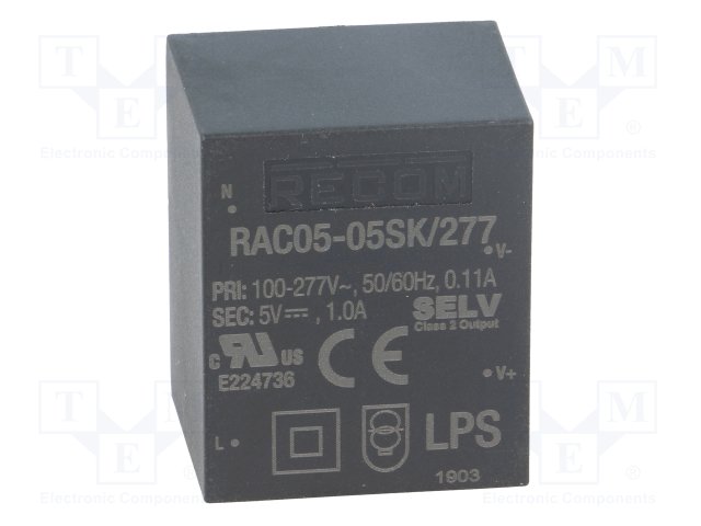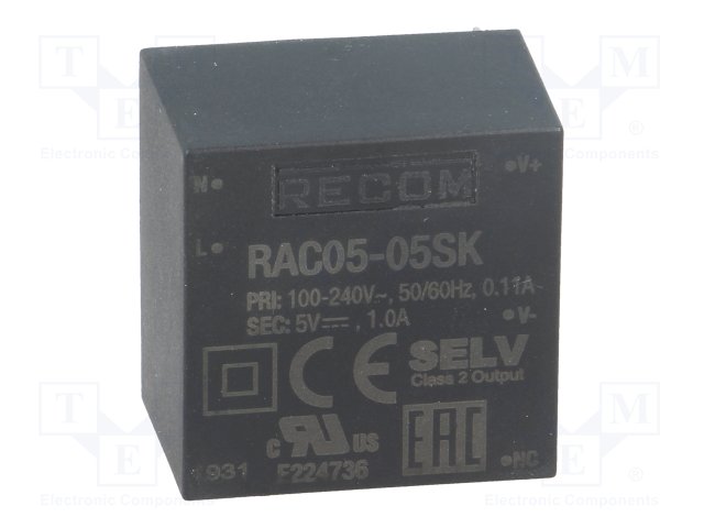 Преобразователь: AC/DC; 5Вт; Uвых: 5ВDC; Iвых: 1А; 80%; Монтаж: PCB |