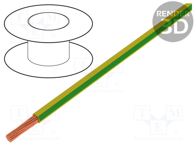 Провод; LgY; многопров; Cu; 1,5мм2; желто-зеленый; ПВХ; 300/500В
