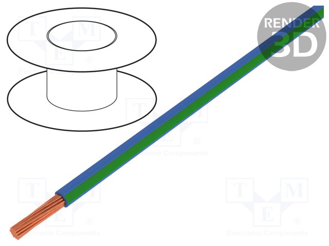 Провод; LgY; многопров; Cu; 0,5мм2; сине-зеленый; ПВХ; 300/500В