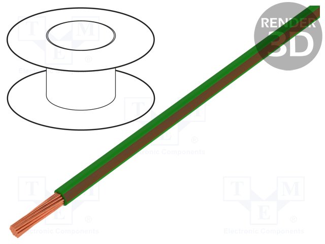 Провод; LgY; многопров; Cu; 0,5мм2; зелено-коричневый; ПВХ; 100м